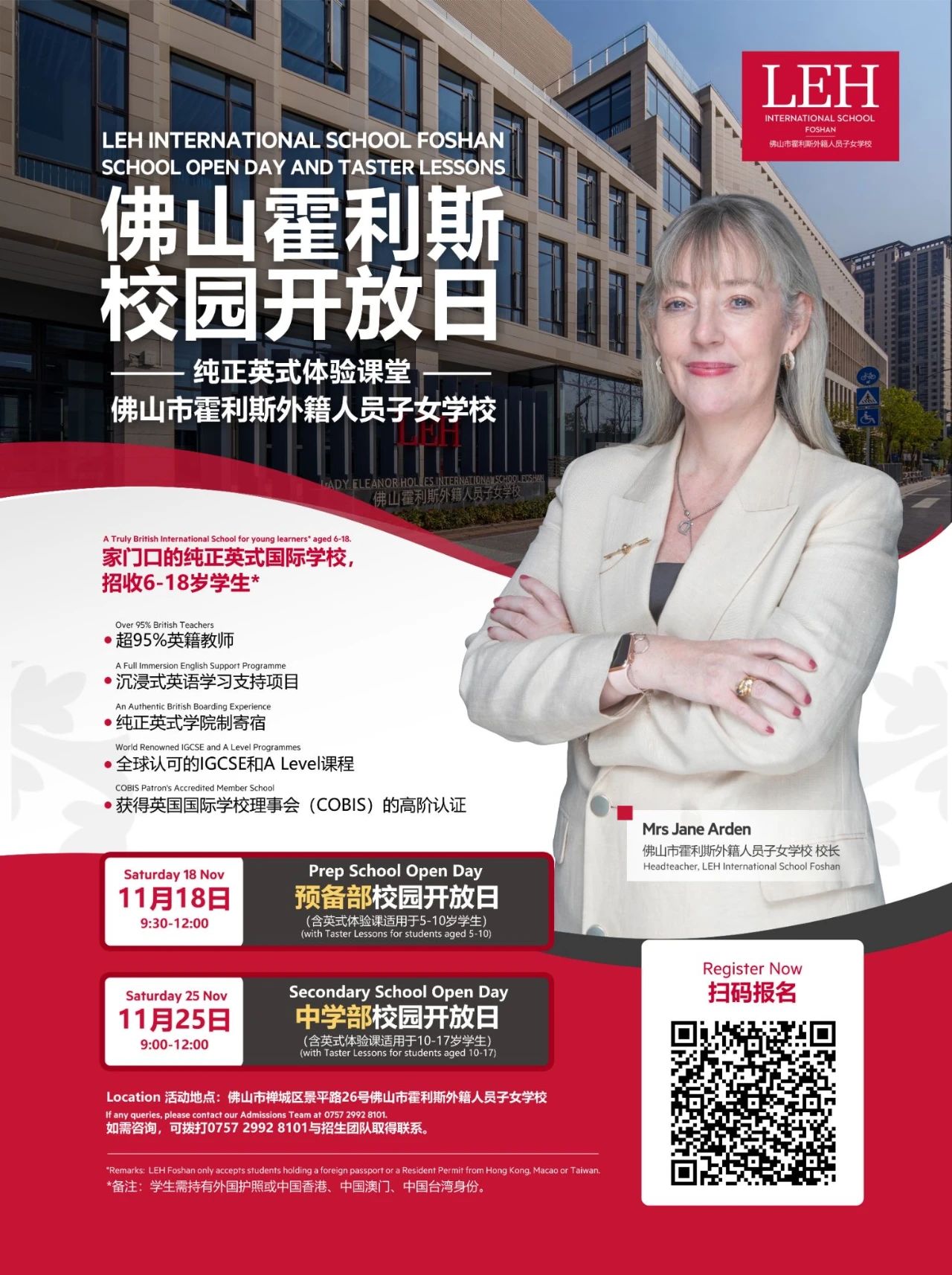 根据佛山霍利斯2023-2024年最新的招生简章,学校招生不仅只面向持有外国护照的学生以及香港、澳门或台湾身份的学生开放,而且入学前还须通过入学评估、英语语言评估、学生面谈、家长面谈等重重环节。