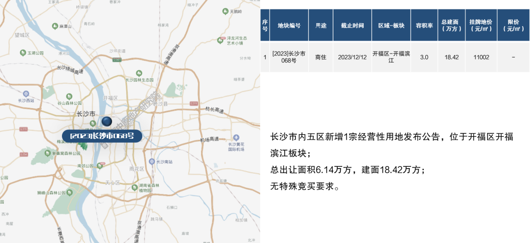 土地市场方面,上周长沙无经营性用地成交,新增1宗地块供应,位于开福中心板块,总出让面积6.14万方,建面18.42万方,无特殊竞买要求。