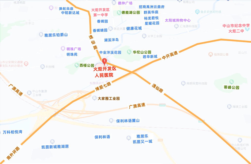 火炬开发区人民医院位于火炬开发区逸仙路,医院临近博爱七路,还有在建中开高速,交通较为便利。医院靠近华佗山公园,周边小区较多,还有不少工业园区,人口相对密集,该医院是片区重要医疗服务配套。