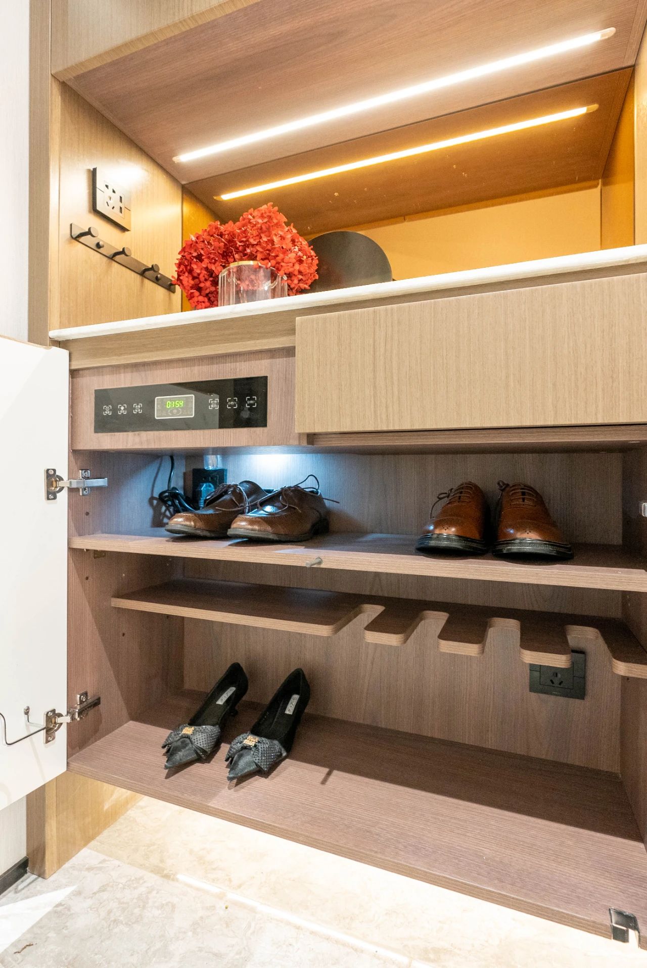 鞋柜还配置了消毒机,这是在千万豪宅中也少有的细节。