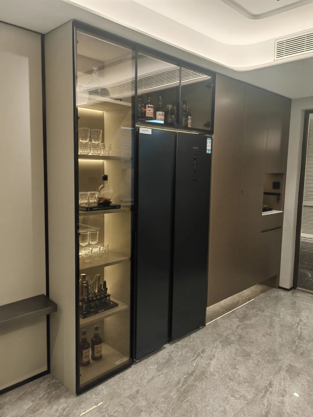 而在入门处放双开门冰箱,也能让厨房有更大的空间。