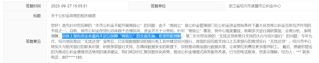 在今年9月,就有绍兴市民提出商转公的建议,当时公积金中心表示总体上现有资金余量尚不足以保障“商转公”的全面实施。