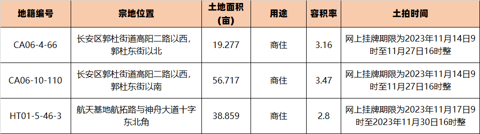 土拍预告|长安、航天三宗地11.27-11.30挂牌截止