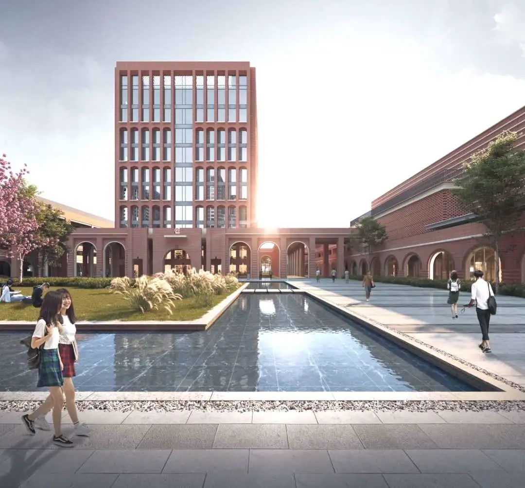 红砖隐喻着百年学府的历史延续拱廊设计则借鉴传统拱桥,联系各个组团寓意学子每日行走的求学之桥终将成为状元之桥铸造新辉煌