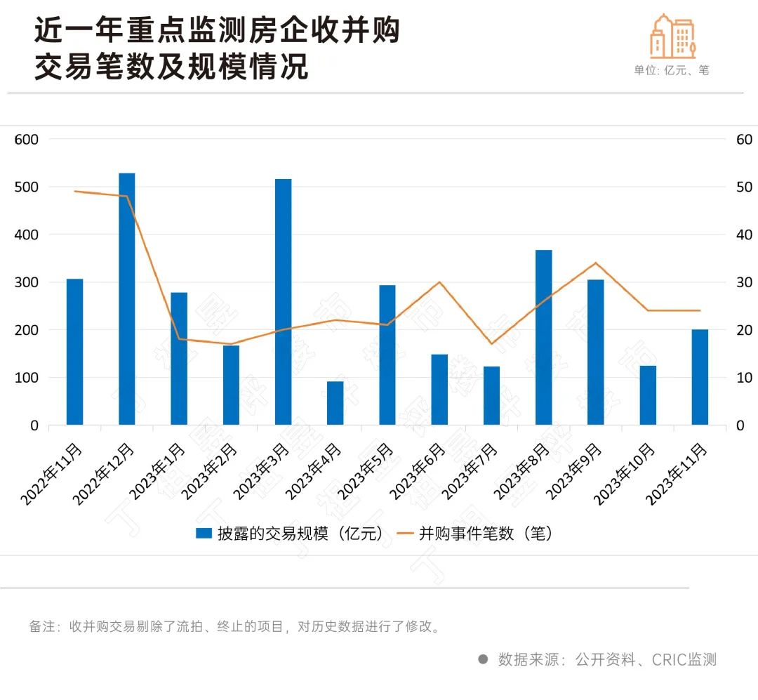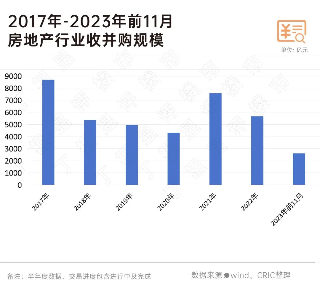 CRIC监测,前11个月,行业收并购规模仅为约2612亿元。而2022年全年行业收并购规模是5669亿元。