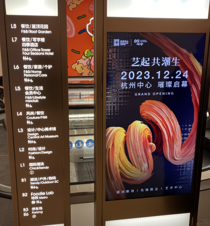 进入杭州中心的一楼,便会被设立的大量艺术空间吸引,整个商场充斥着潮流艺术的氛围。据了解,开业期间,杭州中心将举办“公共艺术季”的“全景剧场”,邀请徐冰、夸尤拉(Quayola)、JUJUWANG和協作派對四位艺术家进行艺术创作展览。