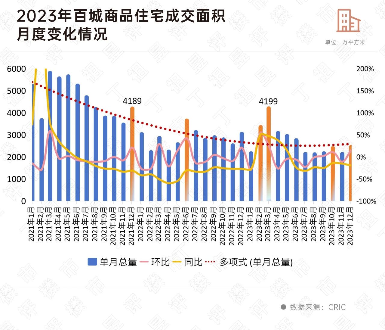 2023年,全国百城商品住宅成交规模低位再降,延续筑底行情。