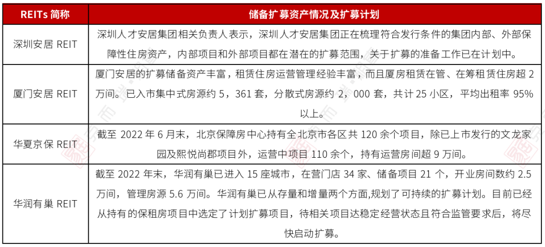 表:中国保租房公募REITS扩募计划情况