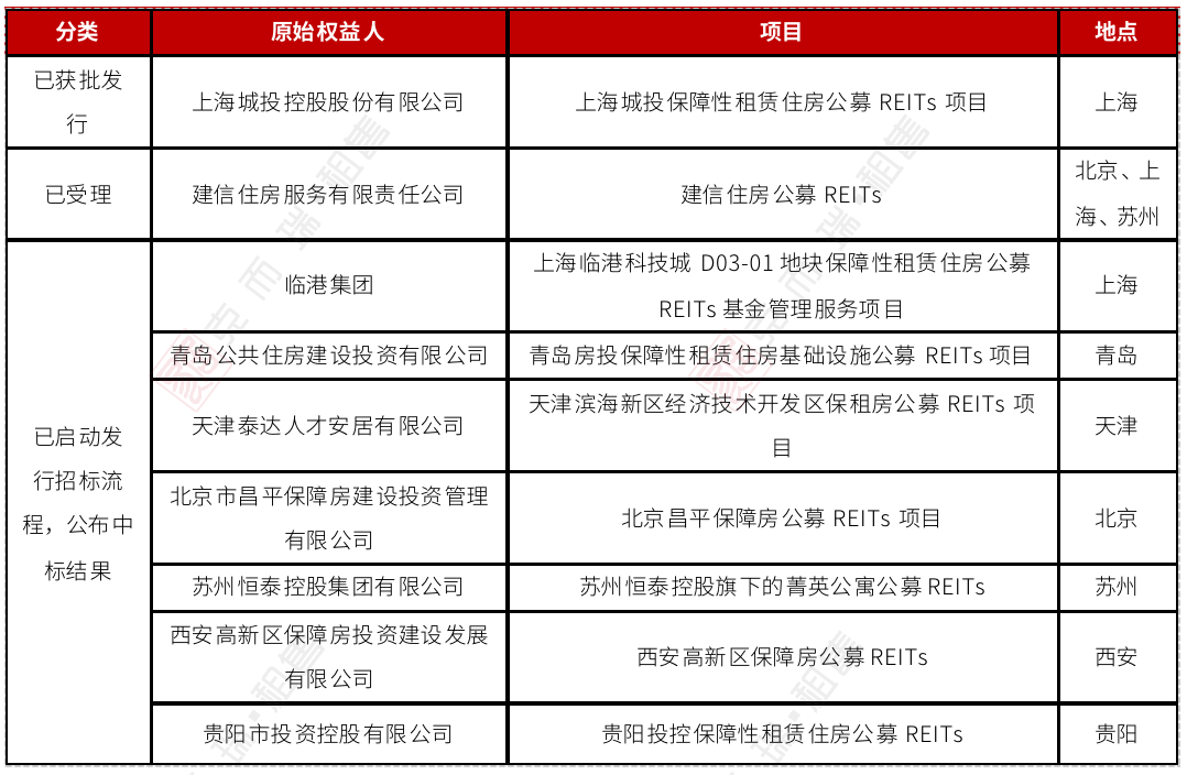表:各城市已启动发行保租房REITs项目情况整理