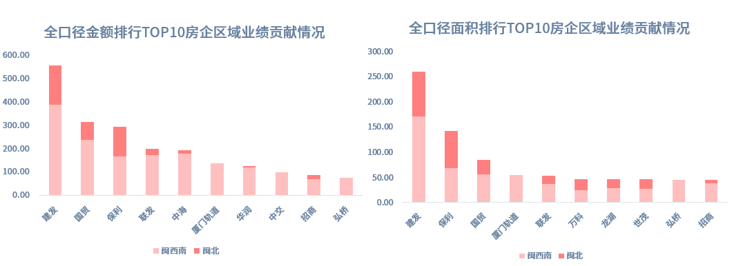 从业绩分布来看,闽西南是头部房企的主要阵地,特别是厦门岛内高净值产品是企业价值的重要体现。高端改善产品的开发能够快速树立企业品牌及产品口碑,进一步赢得下沉市场的认可度。近年来厦门岛内市场表现繁荣,各路房企由“竞争关系”转变为了“合作共赢”,例如国贸、保利、中海、联发等TOP房企联合开发了天琴海、天琴、学仕里、臻樾等多个岛内热销项目,成功实现了“共同进步”。