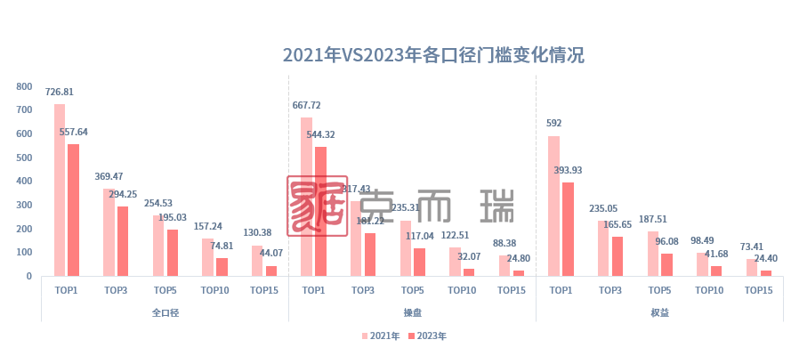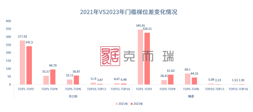 从梯位门槛差额情况来看,与2021年相比TOP5企业差额不断扩大,梯队间愈加泾渭分明;其中TOP3-TO4全口径梯位差扩大至94.79亿元,TOP5-TOP6全口径梯位差扩大至56.87亿元,而其余梯队差值均有收缩。进一步说明了当前充满不确定的市场环境下强者更强,同时强强联合不断蚕食末端梯队市场份额,市场占有度不断向上集中。