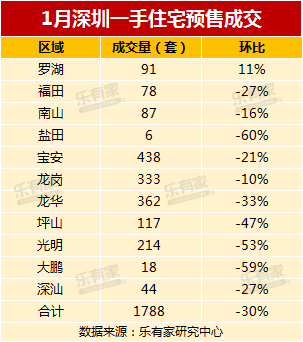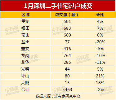 1月深圳成交数据出炉:二手房连续三月破3000套