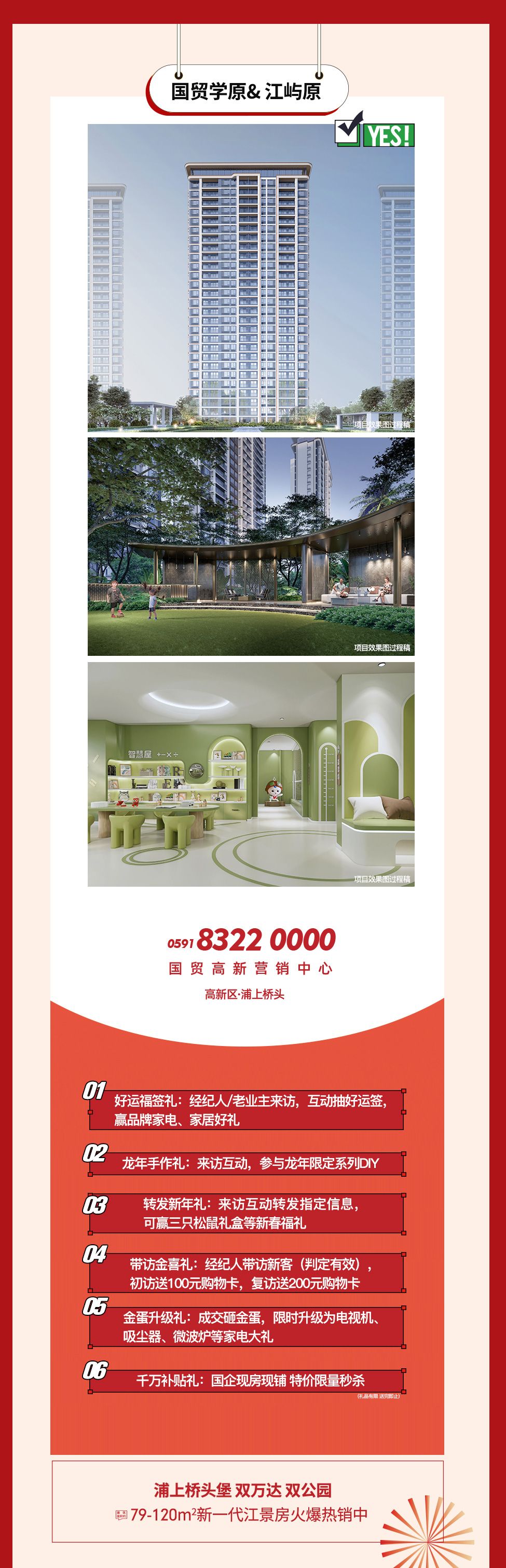 贺岁伴手礼:到访即送定制新春大礼包(以现场置业顾问口径为准);