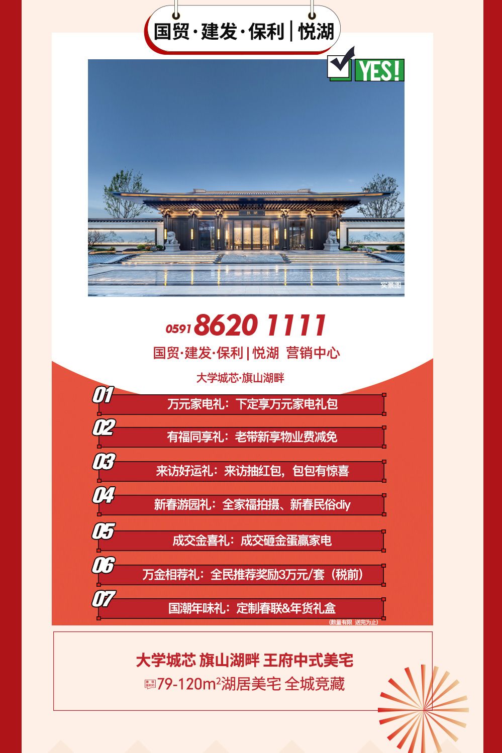 国贸·建发·保利|悦湖,大学城芯,旗山湖畔,王府中式美宅,建筑面积约79-120㎡湖居美宅,全城竞藏。
