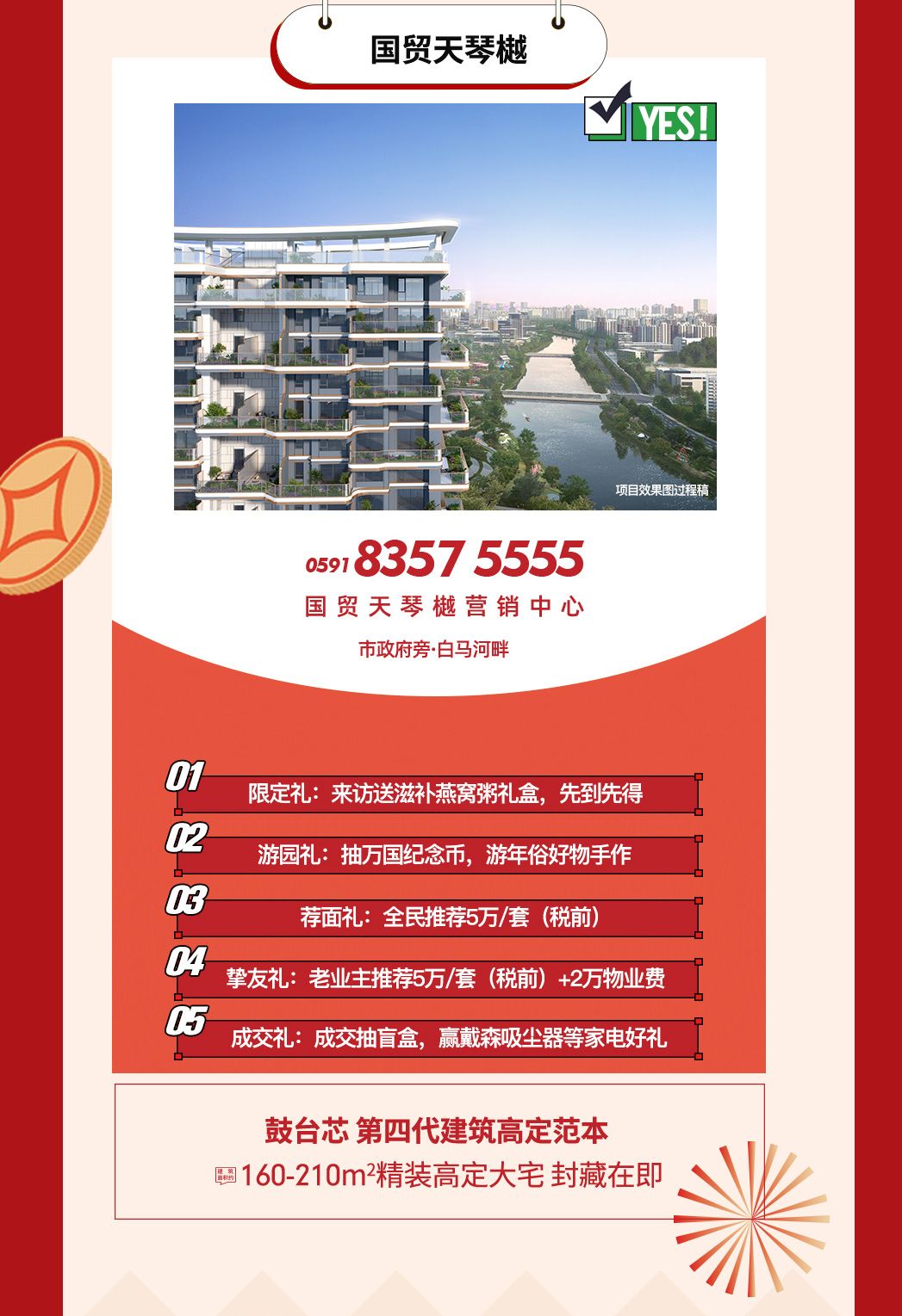 全民捞金礼:全民带访新客户,成功认购最高享5万元奖励(全民经纪人参与客户报备即视为接受全民营销相关制度的所有条款、规则,具体制度以案场为准,活动时间即日起至2月29日)(仅限认购建面约137㎡户型):