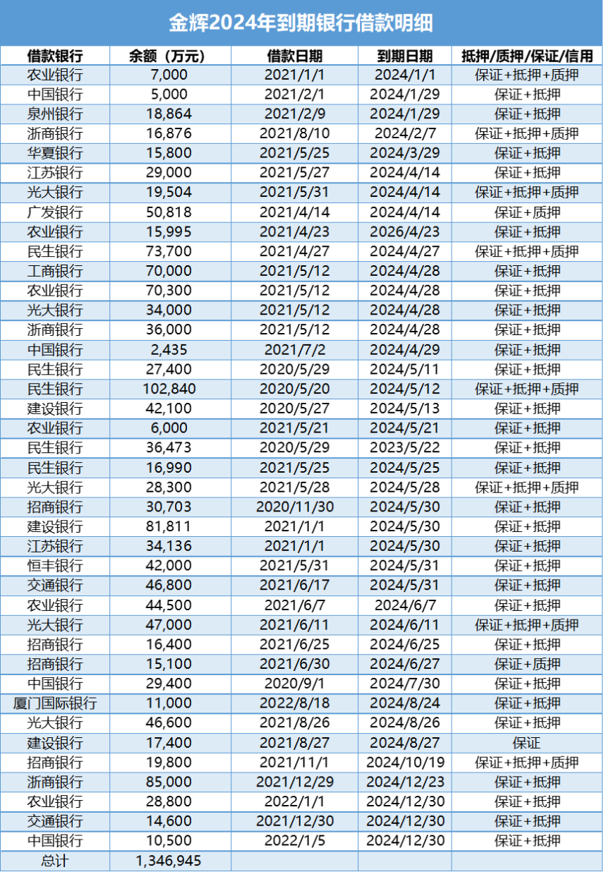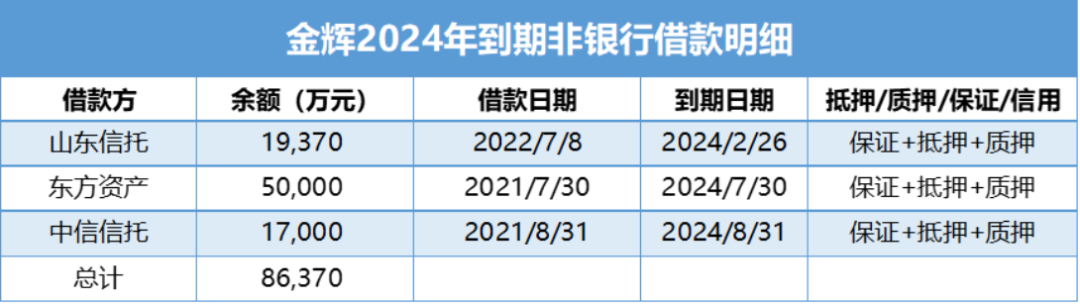 在去年12月的中票募集说明书当中,金辉明确披露了2024年须偿还的银行及非银借款。其中2024年,该公司须偿还的银行借款约134.69亿。
