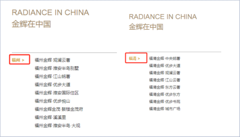创办至今26年间,金辉已进驻全国34个核心城市,在大本营福州、福清近年开发的项目包括金辉淮安半岛、金辉优步大道等17个。