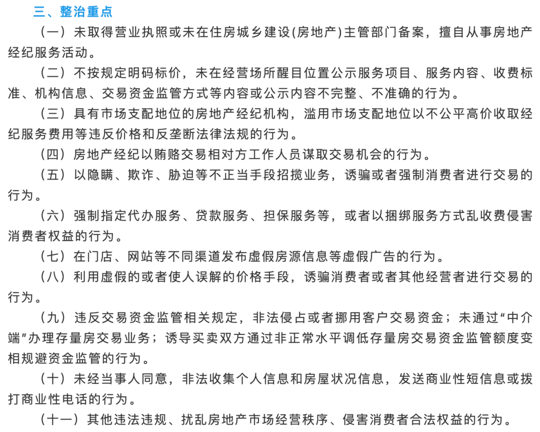 为此,佛山市住建局和市监局决定联合开展专项整治行动,整治范围涵盖一手房和二手房,重点规范房地产经纪的销售代理行为和服务收费行为。此次行动将聚焦于房地产经纪可能存在的市场乱象,整治重点共有11条,旨在全面规范行业行为,促进市场健康发展。