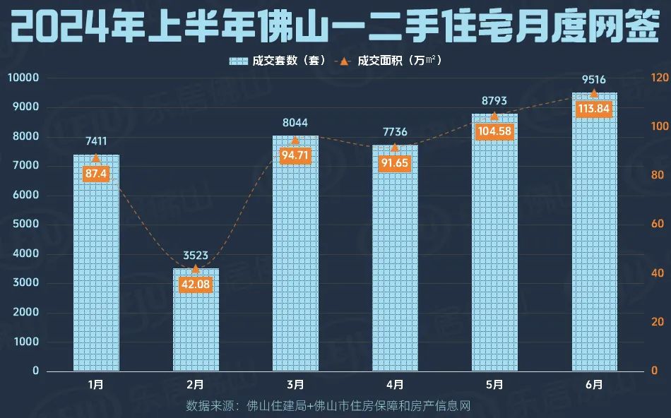 尤其是6月,佛山住宅市场延续了5月的增长势头,一二手住宅成交量和价格均环比上升,成交量达到9516套,创年内新高。
