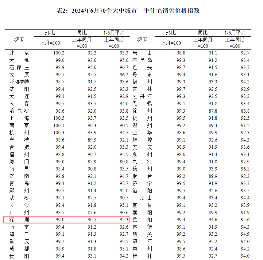 6月的深圳二手房价,录得近三年以来同比最大跌幅。