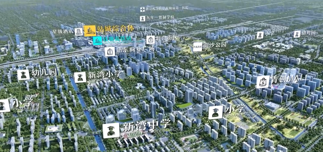钱塘高铁新城以钱塘高铁站建设为契机,将打造一个以创智产业为核心,结合品质居住与田园乡村特色的国际化新城,实现产业与城市的深度融合发展。