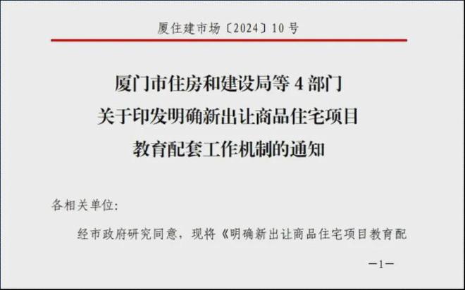 事实上,早在7月18日厦门市住房和建设局、市自然资源和规划局、市教育局、市市场监督管理局联合发布了《明确新出让商品住宅项目教育配套工作机制》。