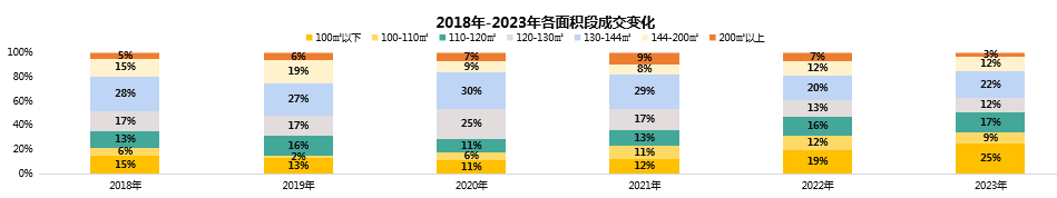 2018-2023年昆明住宅各面积段成交变化/克而瑞