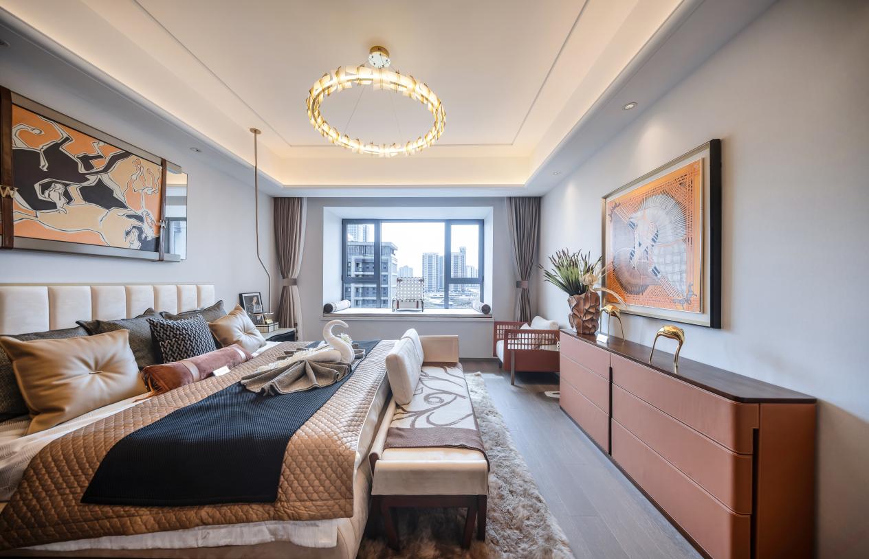 双主卧套房,均以星级酒店套房体系设计打造,超大主卧尺度,配置步入式衣帽间与超大尺度卫浴,生活尊享感拉满。