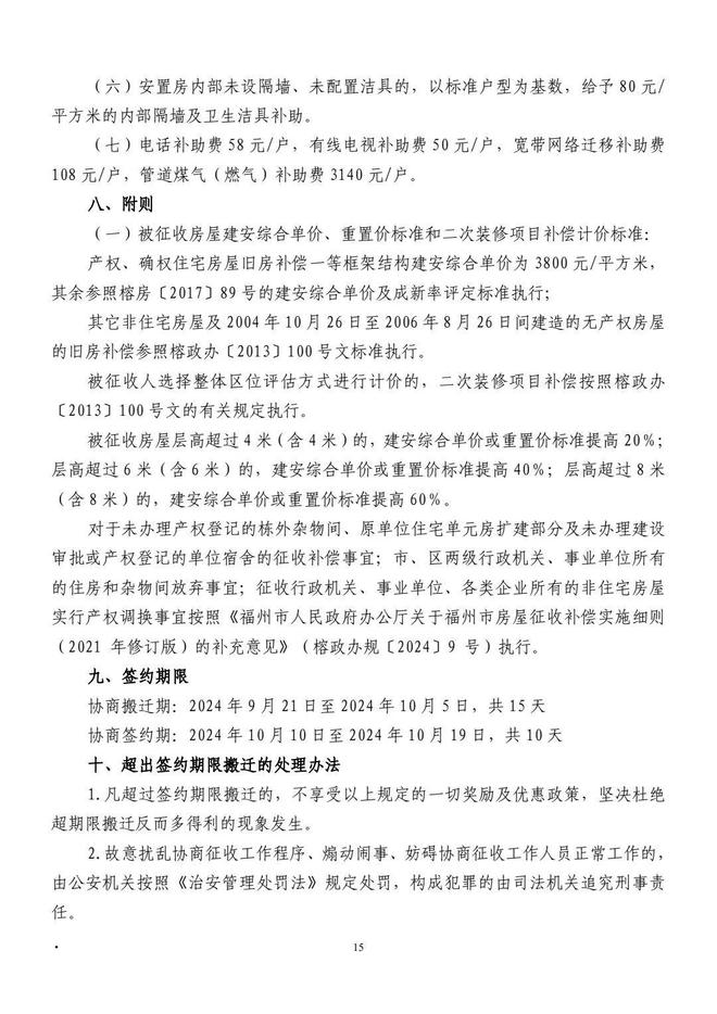 协商搬迁期:2024年9月21日至2024年10月5日,共15天