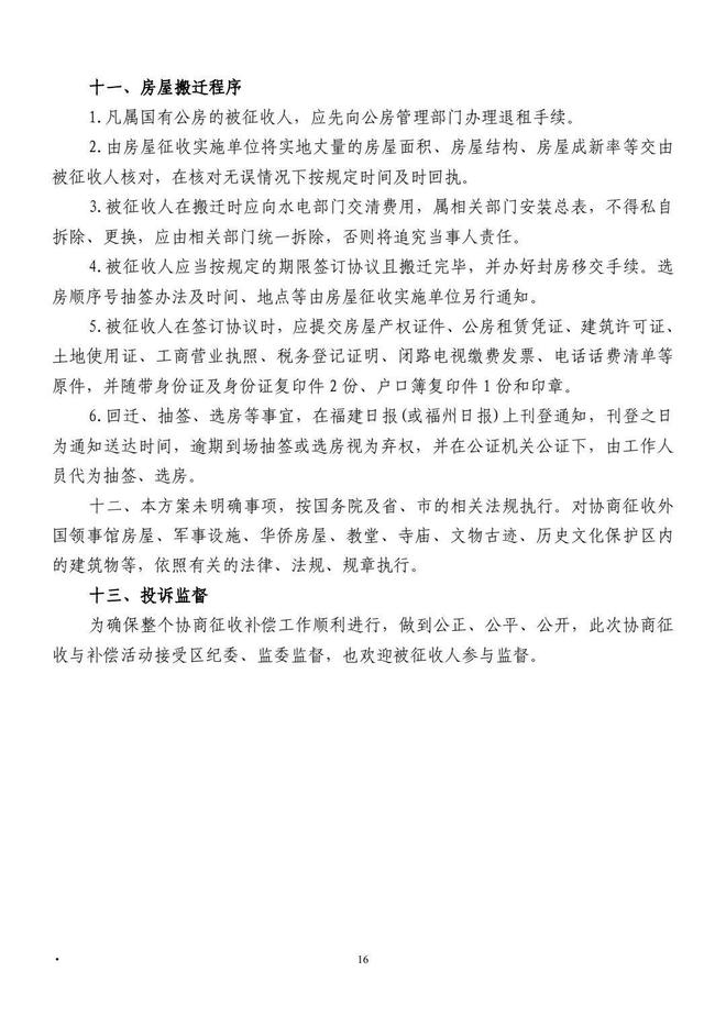 6.回迁、抽签、选房等事宜,在福建日报(或福州日报)上刊登通知,刊登之日为通知送达时间,逾期到场抽签或选房视为弃权,并在公证机关公证下,由工作人员代为抽签、选房。