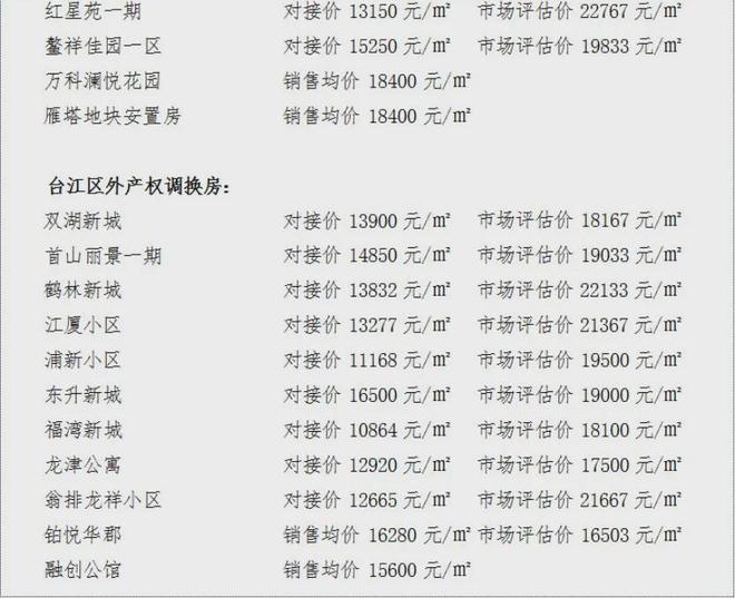 1. 安置型商品房(或产权调换房)地点及销售均价(对接价)凤凰新村周边地块就地安置房对接价17900元/㎡;