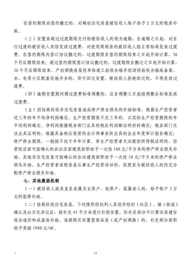 2.协商征收店面、办公用房、厂房、仓储性用房等非住宅房屋,按确权面积每平方米给予不超过100元的提前搬迁奖励。