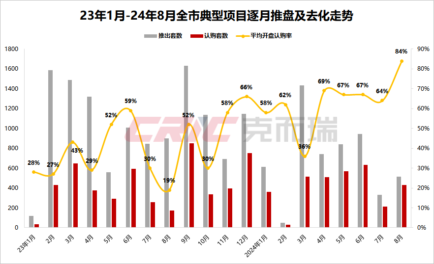 月度推盘情况来看,根据克而瑞天津机构监测,8月推盘去化率84%,较上月有明显提高。