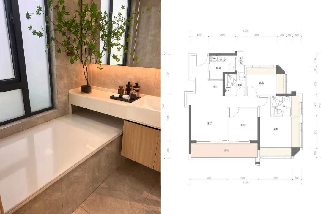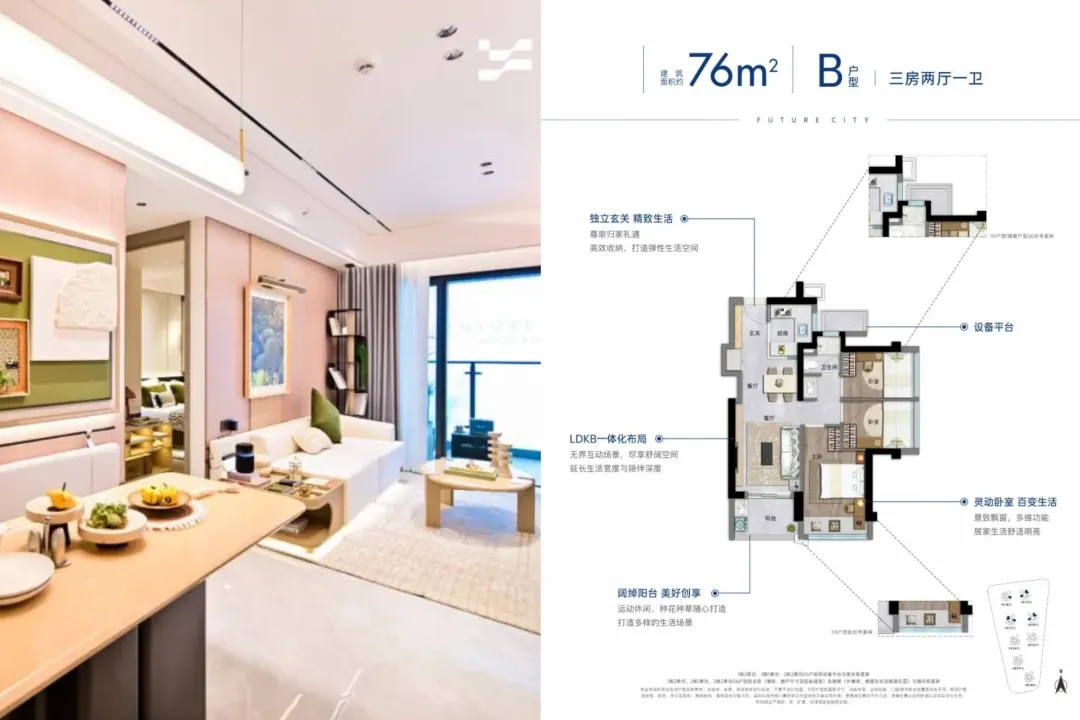 龙华溪山禾玺首府,100%使用率约72㎡实现3房;