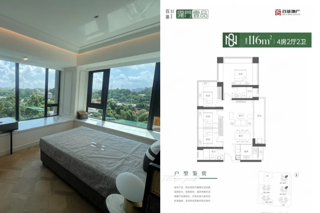 以观澜珑门壹品花园为例,为实现高赠送、宽视野,多个户型主卧的三面外墙都做成飘窗,以后交付入住,必须要把衣柜做在其中一扇窗户前。