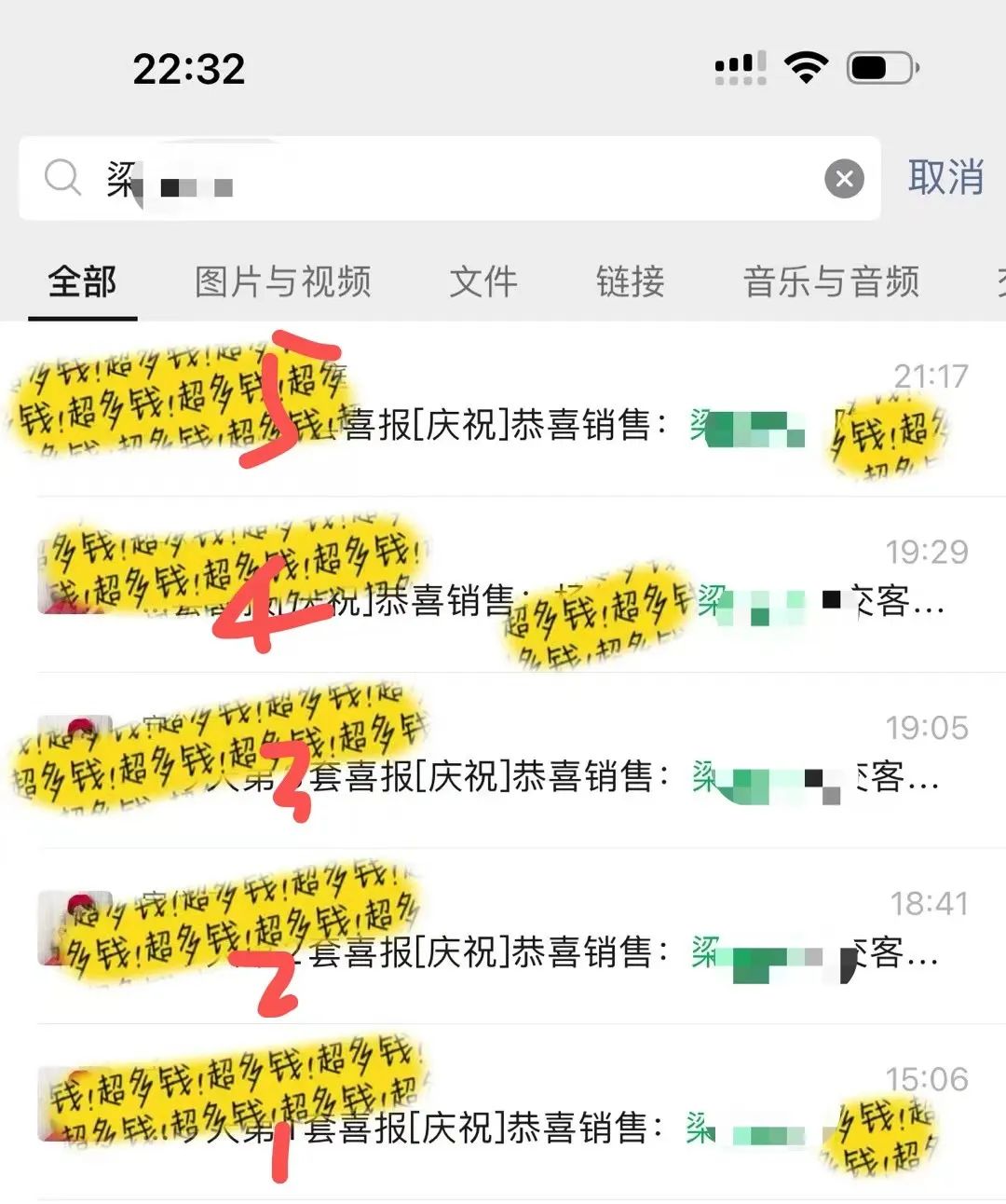 有销售更出示了7号从下午到晚上,成交了5单的个人战绩。