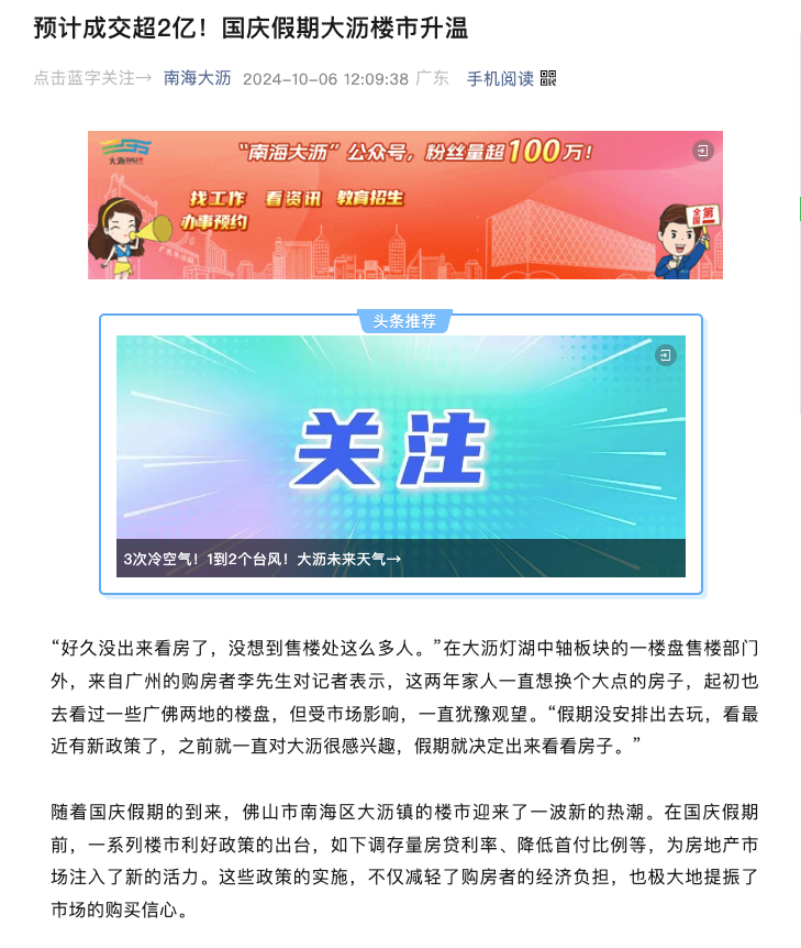 上到广东发布,下到区级、镇街官微,都在为这一次楼市复苏助力。