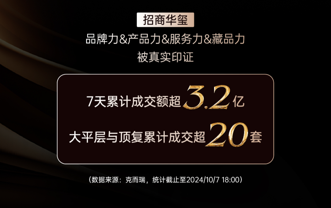 其中,招商华玺国庆7天累计成交20套,约3.2亿元,成交单价高达66323元/㎡,创板块国庆销售量价新高。