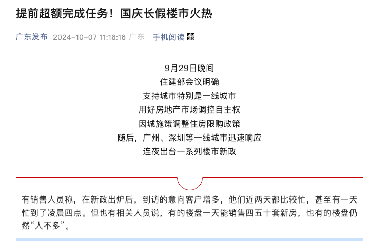 在国庆假期前,中央政治局释放了房地产鲜明政策信号,北上广深等一线热点城市相继调整或取消限购政策,这些政策的实施,不仅减轻了购房者的经济负担,也极大地提振了市场的购买信心。