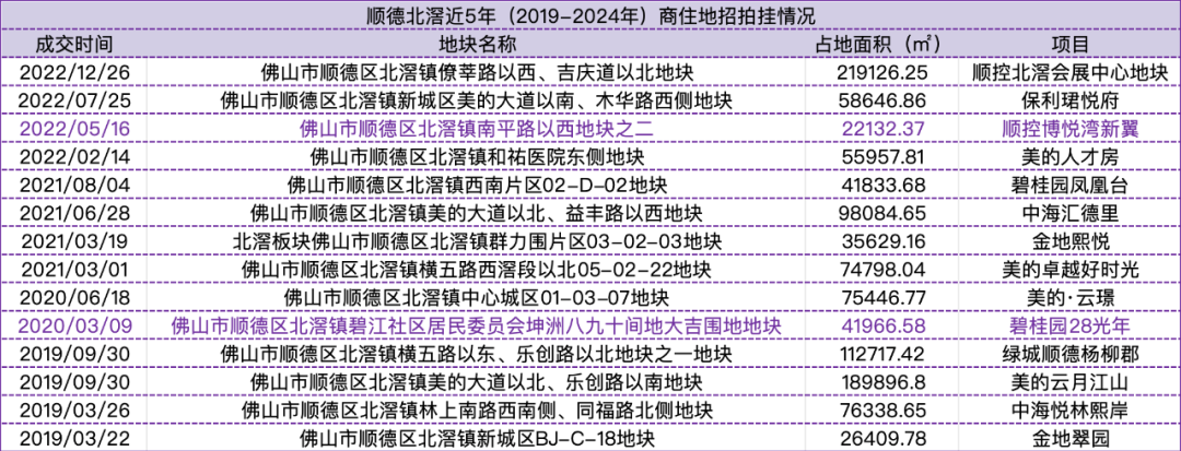 顺德北滘近5年(2019-2024年)商住地招拍挂情况