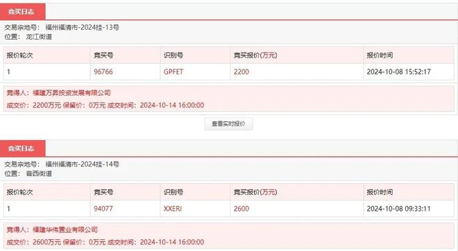 10月14日,福清市今年第五场土拍圆满结束,挂牌的2宗地块均成功出让。其中,宗地2024挂-13号地块被福建万昇投资发展有限公司竞得,成交价为2200万元;宗地2024挂-14号地块被福建华伟置业有限公司收入囊中,成交价为2600万元。