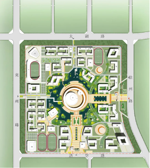 ▼郑州航院航空港校区图书馆及大学生运动中心效果图