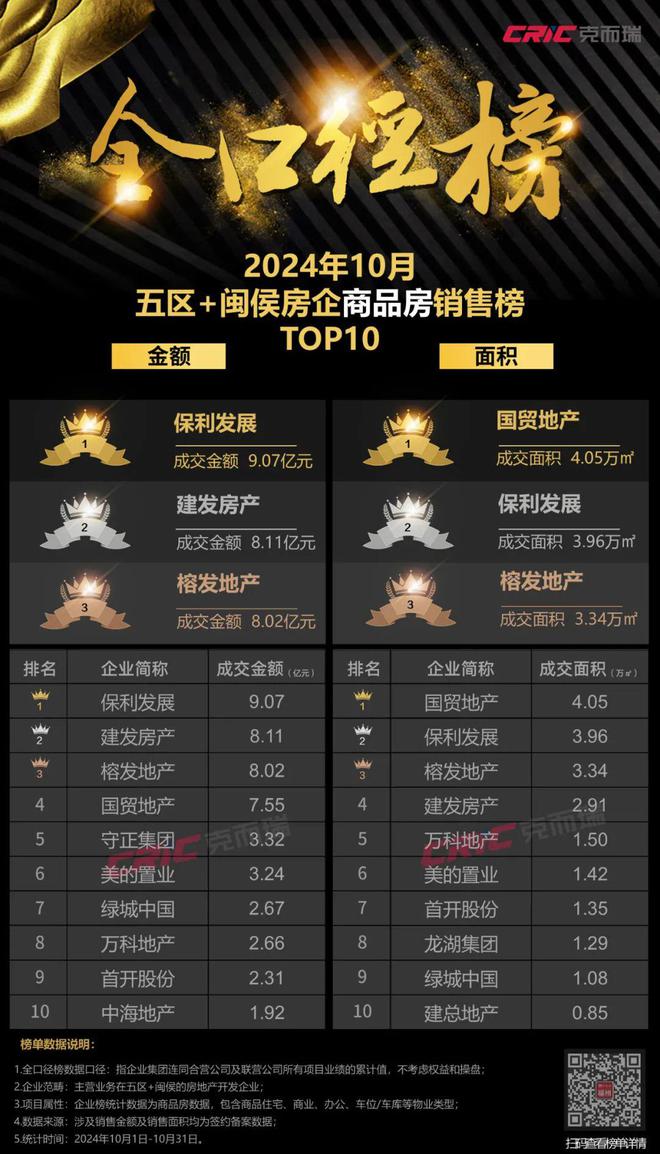 成交约8亿!榕发第一!福州房企10月销售排行榜出炉!