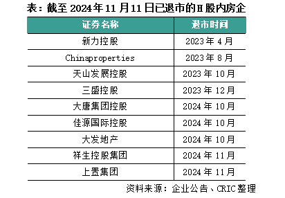 根据港交所的上市规则,连续停牌18个月将有可能被港交所直接摘牌,虽然大多数的房企成功在规定期限内成功发布年报完成了复牌,但是仍有部分企业迎来了退市的结果。自从2023年4月新力控股为本轮H股内房企退市首开记录以来,截至2024年11月11日,共有9家H股内房企被勒令退市,包括曾经的30强房企祥生控股。