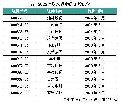 A股已有多家房企退市