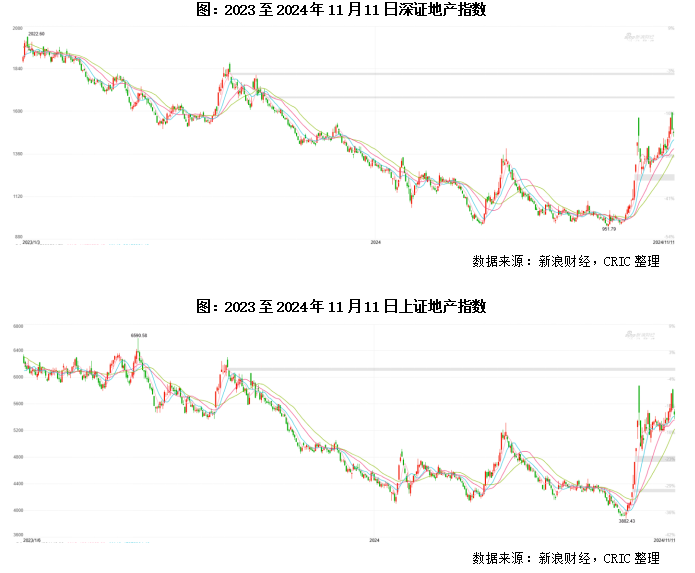 进入2024年之后,房地产行业的寒冬仍在持续,A股地产股的股价整体仍在持续走低。从2023年以来A股的深证/上证地产指数来看,2023年-2024年9月长期处于全线下跌的态势,且基本都在2024年9月17日左右降到了近年来的新低,因而泛海、世茂、中南和迪马都在2024年的前8个月因为面值退市。