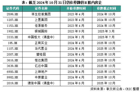 H股仍有大量房企停牌中