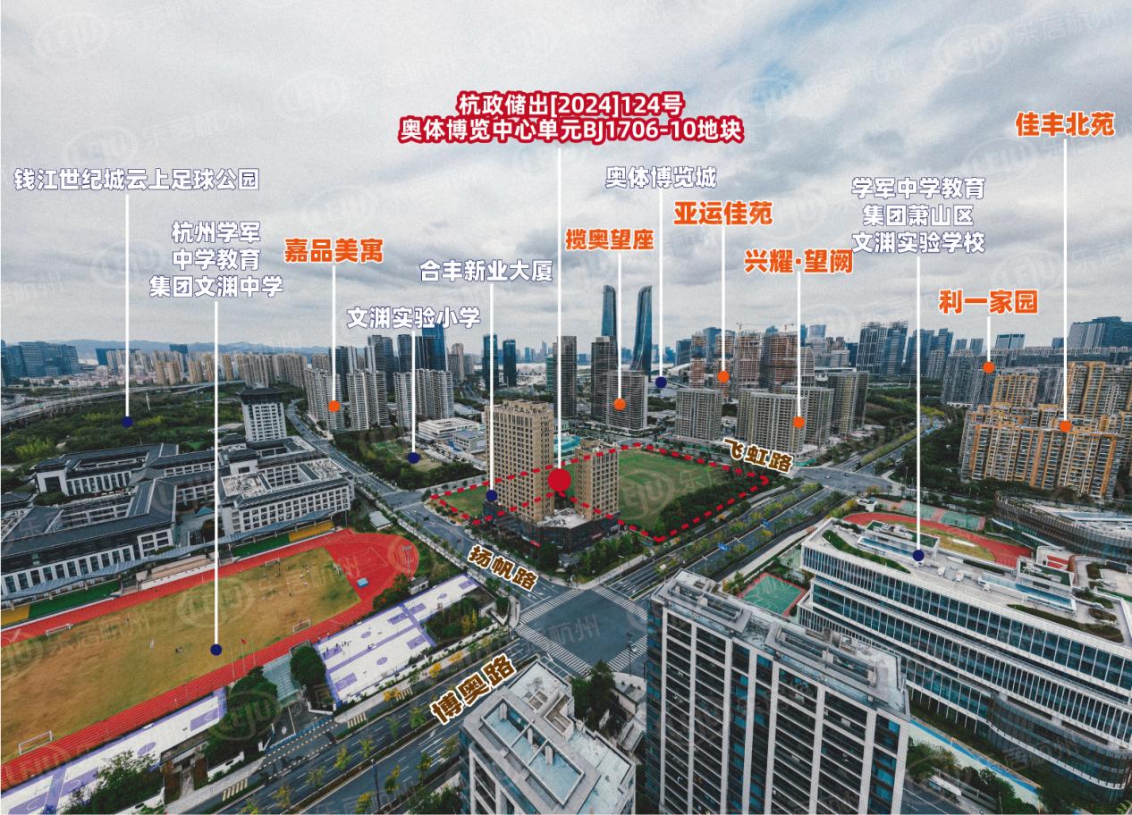 奥体核心区的大小莲花碗、国博中心、杭州之门等一众超级地标,都在边上。