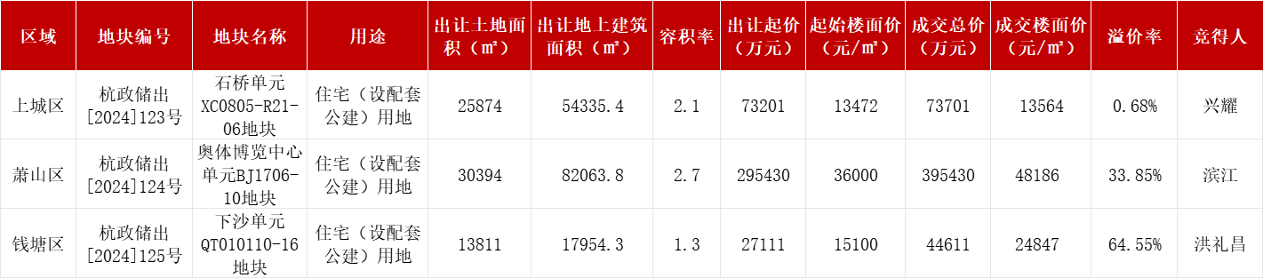 奥体地价4.8万+!板块新高!下沙低密地溢价64.55%!