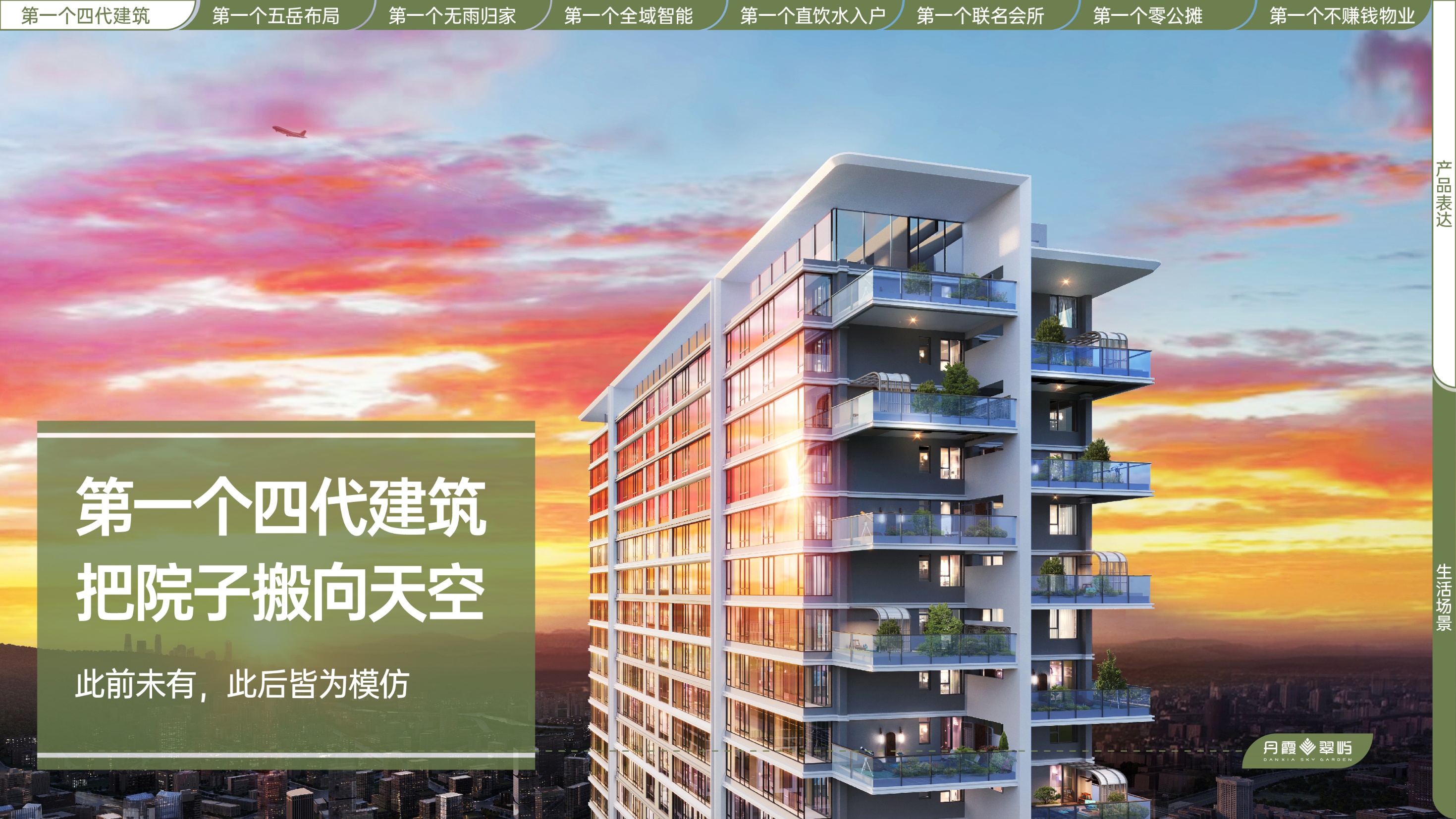 从已经曝光的效果图来看,义承丹霞翠屿作为第四代住宅,既解决了公摊面积大、景观绿化率低、建筑外观千篇一律等前三代建筑的短板,又赋予生活更多想象力空间,特点突出、优势明显,对于市面上绝大部分的存量产品而言,无疑是降维打击。